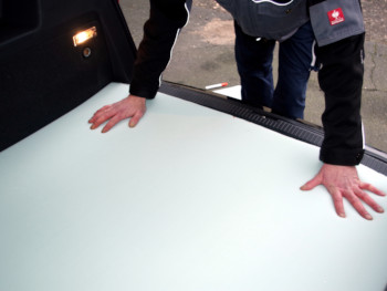 Die sachkundigen Schaumstoffschneider passen den Rohschaumstoff direkt im Fahrzeug an.