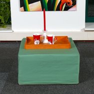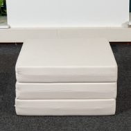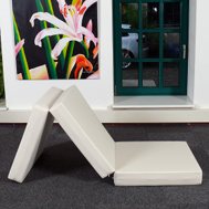 Mit wenigen Handgriffen entsteht aus einem kleinen Hocker ein Gäste-Schlafsofa. Schaumhöhe 12 cm.
